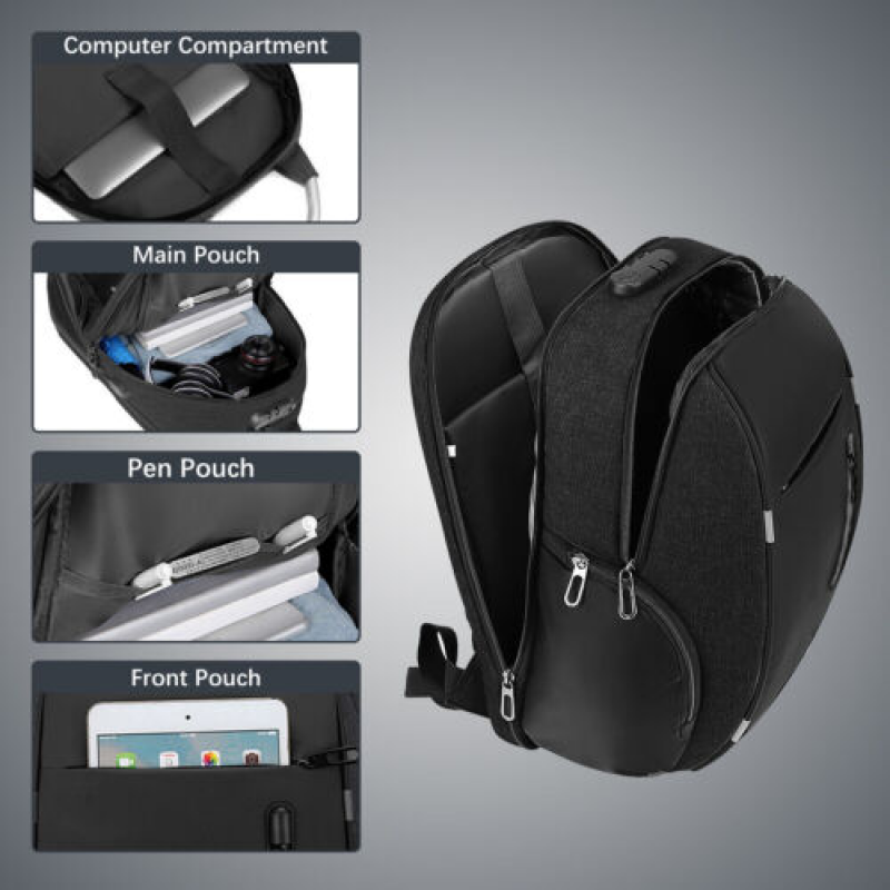 17in Men Laptop Backpack Anti Theft Waterproof Large Rucksack Travel School Bag