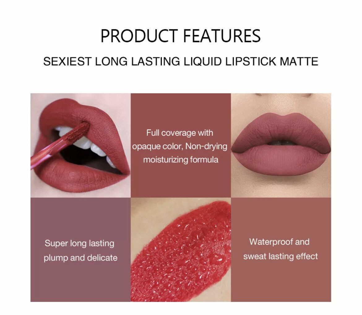 6Pcs Matte Lipstick Set Waterproof Long Lasting Lipstick Beauty Cosmetic Make Up