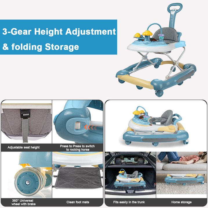 Activity Baby Walkers with Removable Toy Tray for Boys&Girls, Music - Unisex,Blue