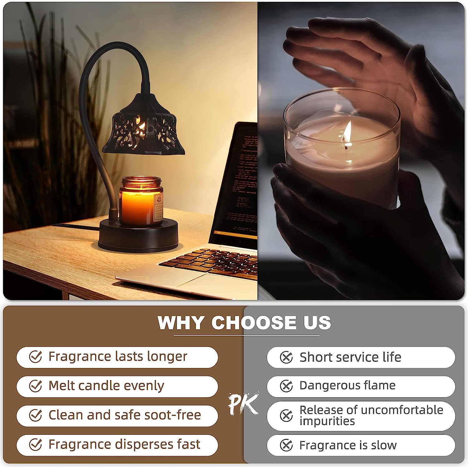 Candle Warmer Lamp, with 2 Bulbs, Candle Lamp with Timer & Dimmer, Height Adjust
