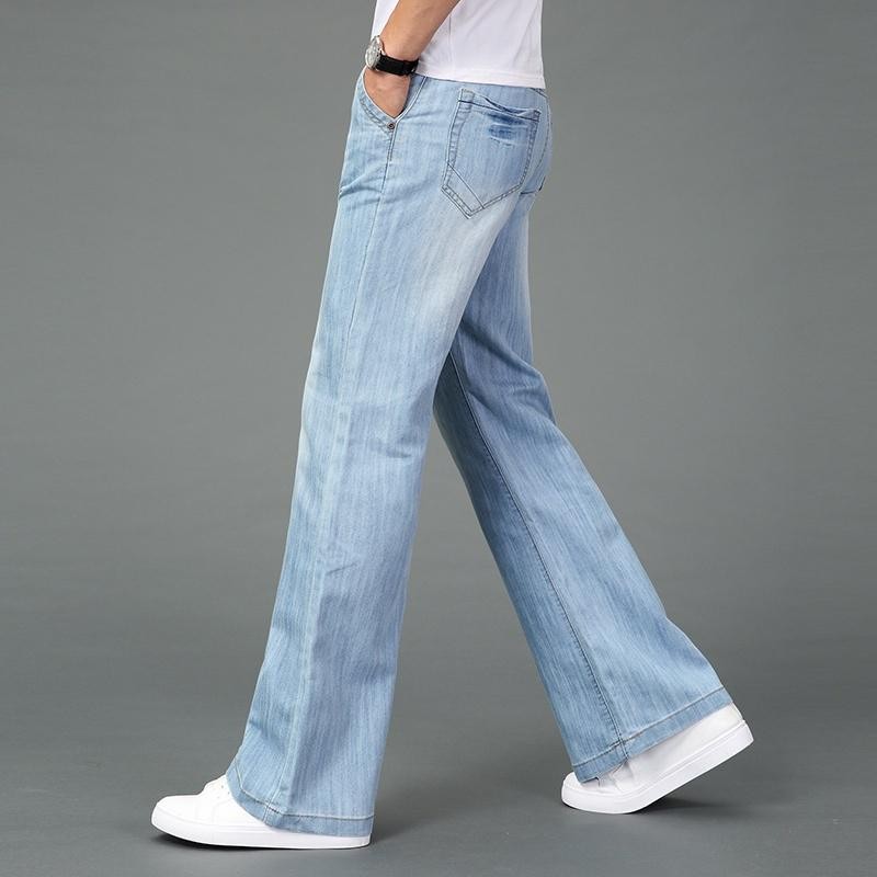 Men Bell Bottom Jeans 60s Flared Denim Pants Wide Leg Trousers Mid Rise Autumn