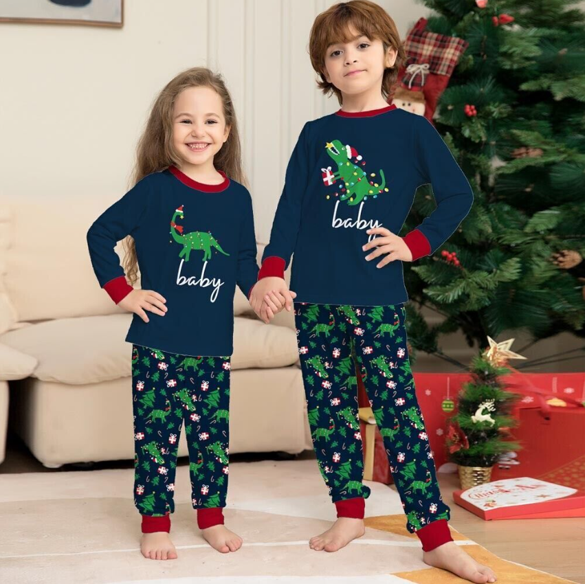 Christmas Pyjamas Xmas PJs Family Matching Adults Kids Dinosaurs Nightwear Set
