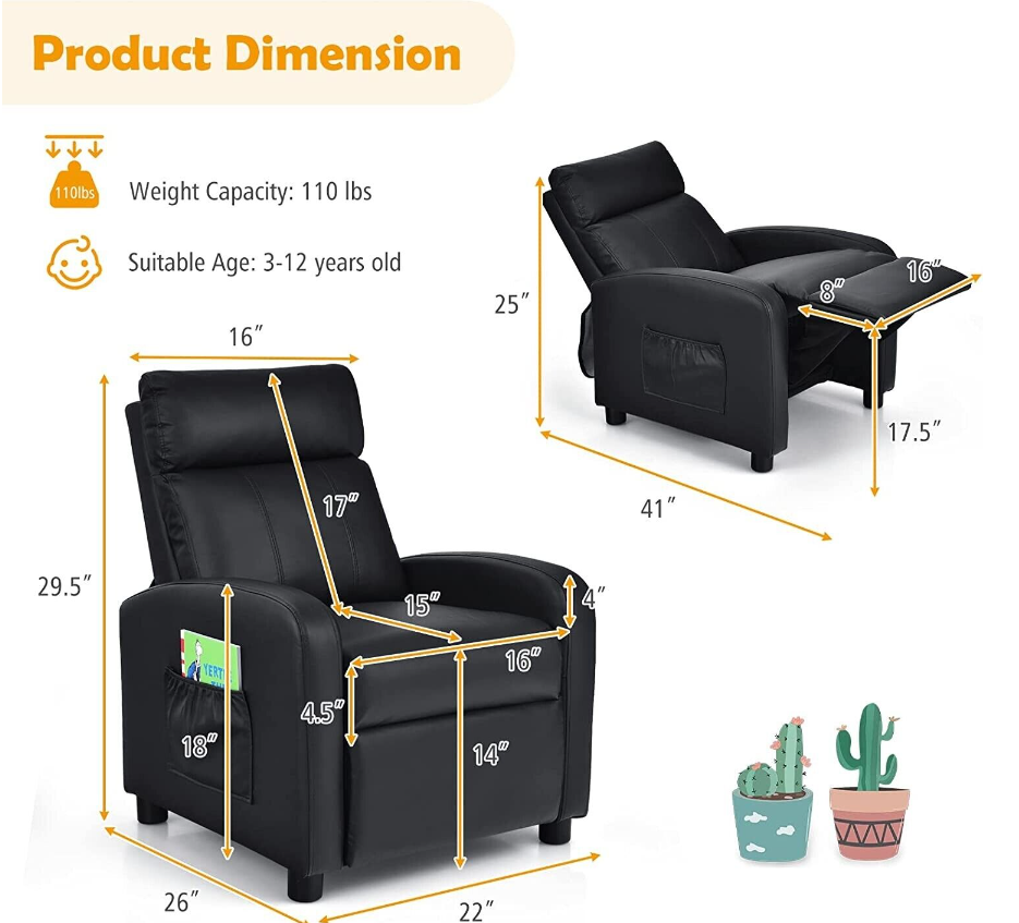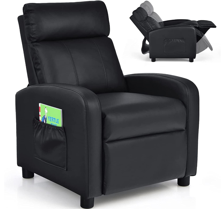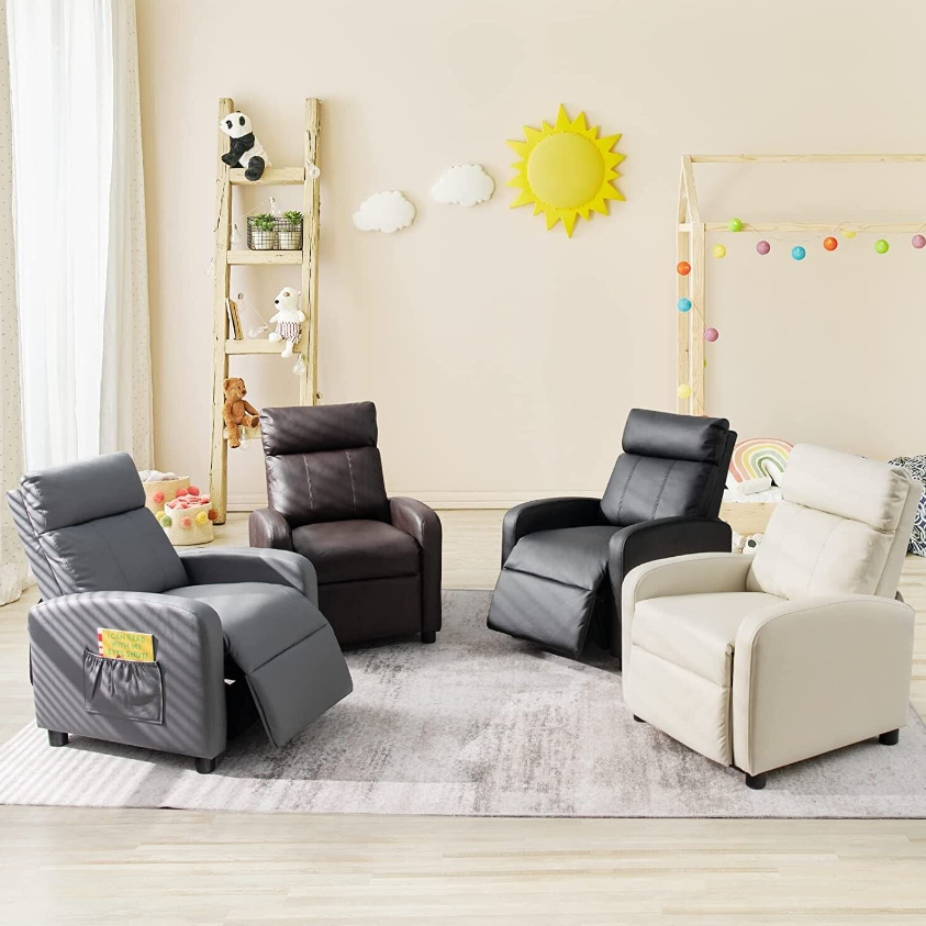 Costzon Kids Recliner, Adjustable PU Leather Lounge Chair w/Side Pockets, Footre