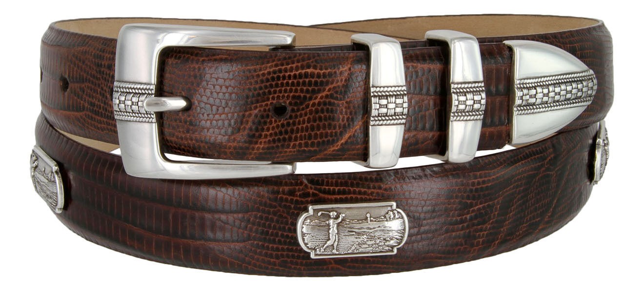 Golf of Scottsdale Men's Leather Italian Calfskin Concho Dress Belt 1-1/8" Wide
