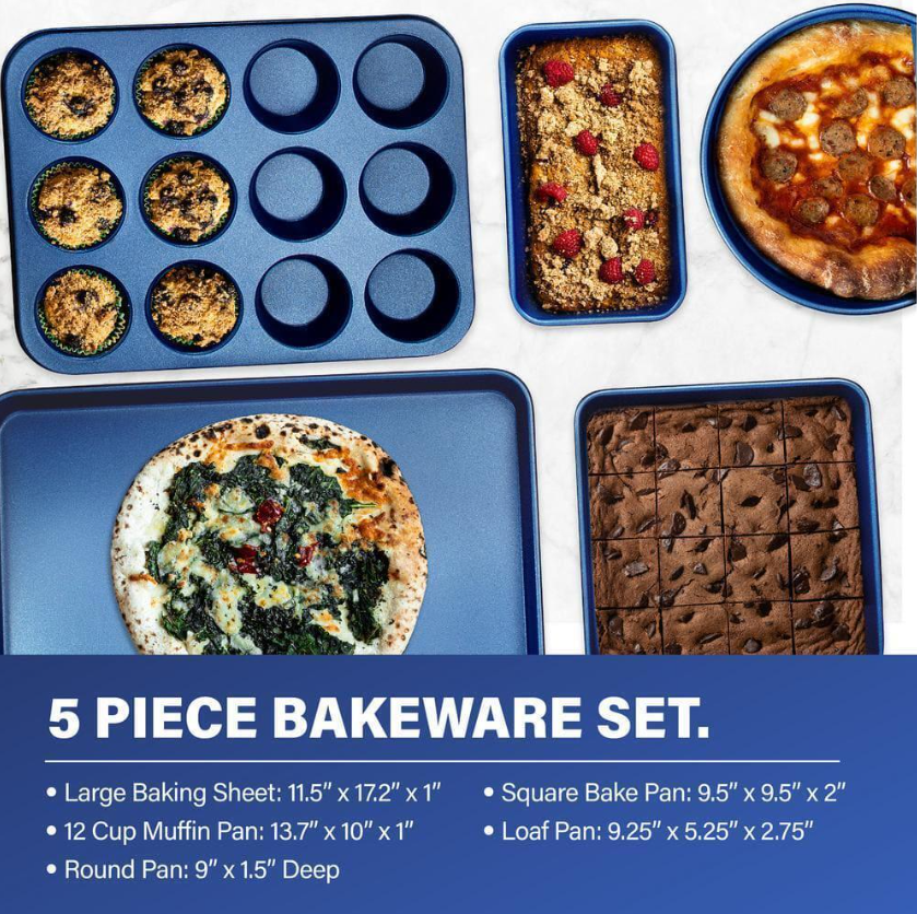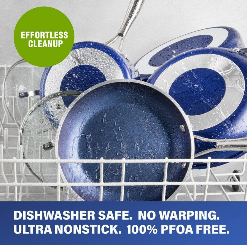 GRANITESTONE Cookware + Bakeware 15-Pcs Blue Aluminum Non-Stick Diamond Infused