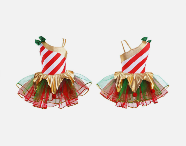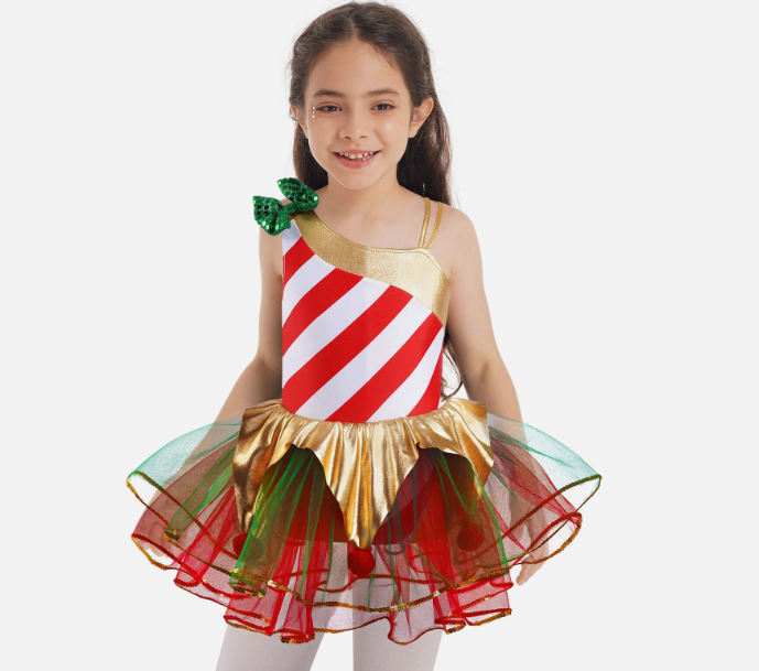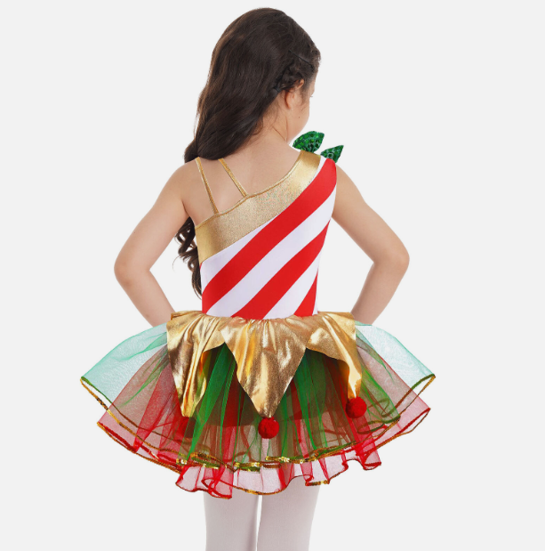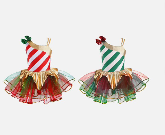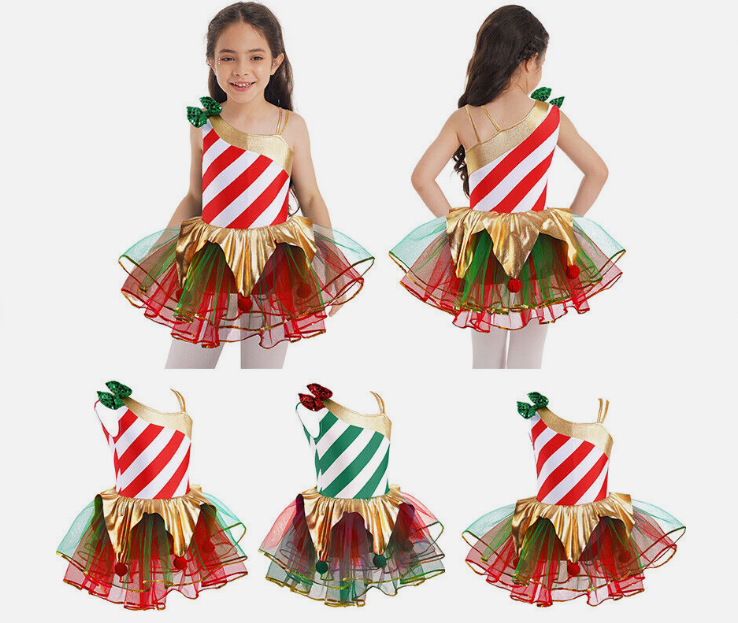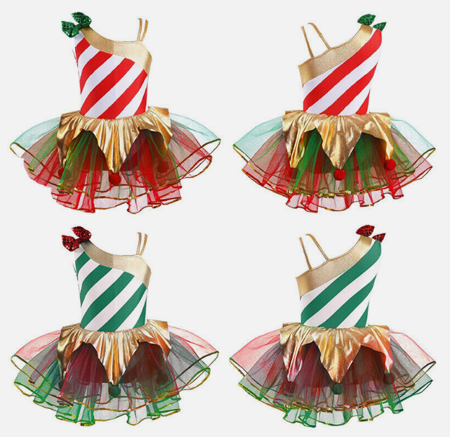 Kids Girls Dance Tutu Dress Carnival Bodysuit Performance Mesh Dress Cosplay