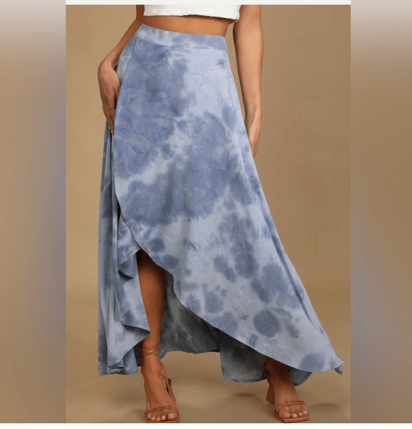 Lulus Exclusive! No need to daydream forever! The Lulus Above the Clouds Blue Tie-Dye High-Low Midi Skirt is here to elevate your style to infinity and beyond with its lightweight and breezy woven composition that shapes a high, banded waist and an overlapping silhouette that ends at a flowy high-low hem. Hidden back zipper/clasp.