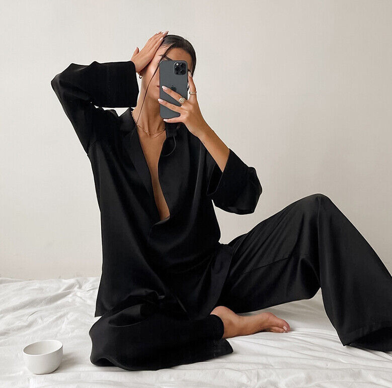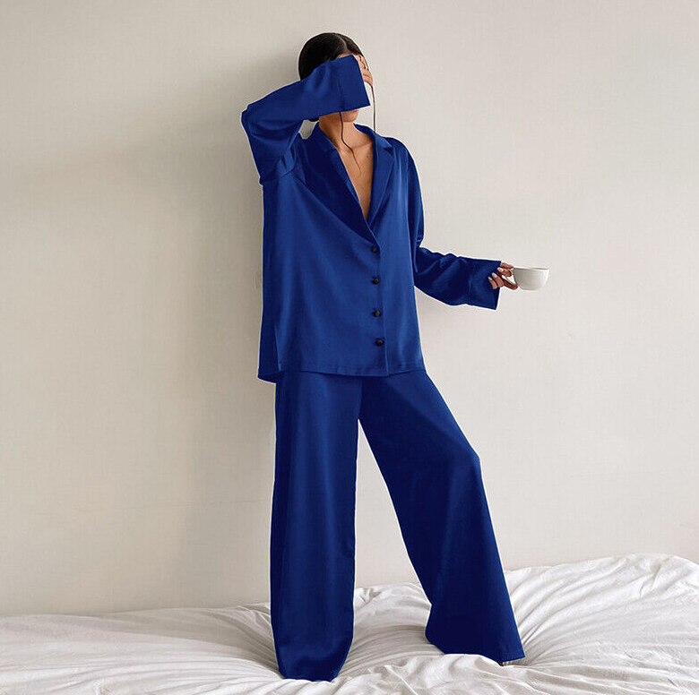Luxury Women Oversized Silk Satin Sleepwear Sexy Pajamas Set Long Sleeves Pyjama