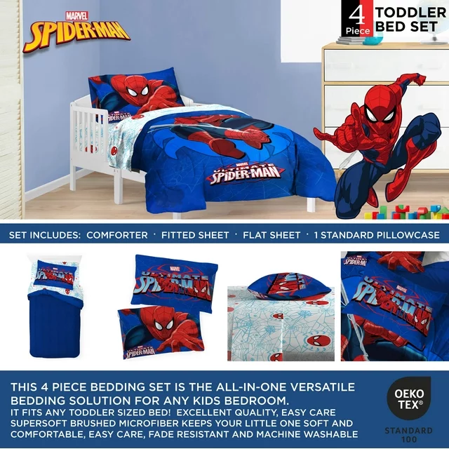 Marvel Spider-Man Classic Toddler Bed Set, Kids Superhero Bedding