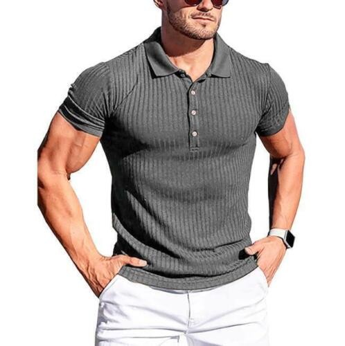 Men Short Sleeve Ribbed Muscle Polo Shirt Casual Slim Fit Stretch T-Shirt Top