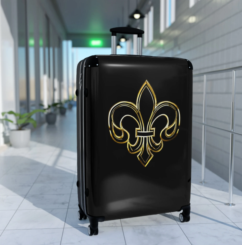 Unique & Elegant Design: Adorned with a gold-trimmed fleur-de-lis on a sleek black background, this luggage piece is both stylish and recognizable. It's a unique conversation starter that allows you to express your Saints pride.
