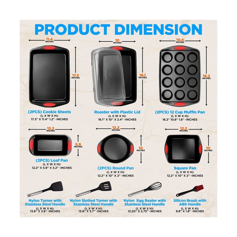 NutriChef 15-Piece Baking Pan Set - PFOA, PFOS, PTFE Free Flexible Nonstick B...