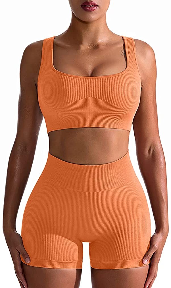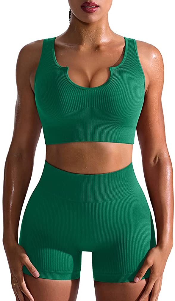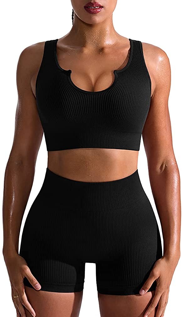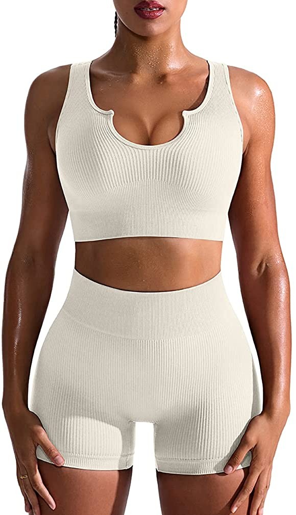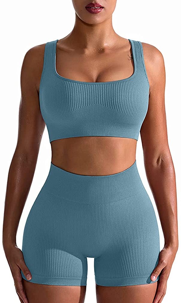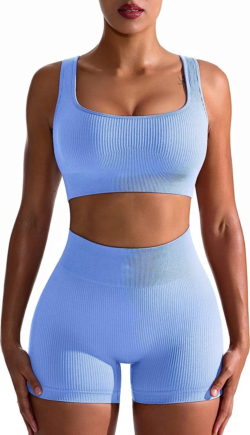 OQQ Workout Outfits for Women 2 Piece Seamless Ribbed High Waist Leggings with S