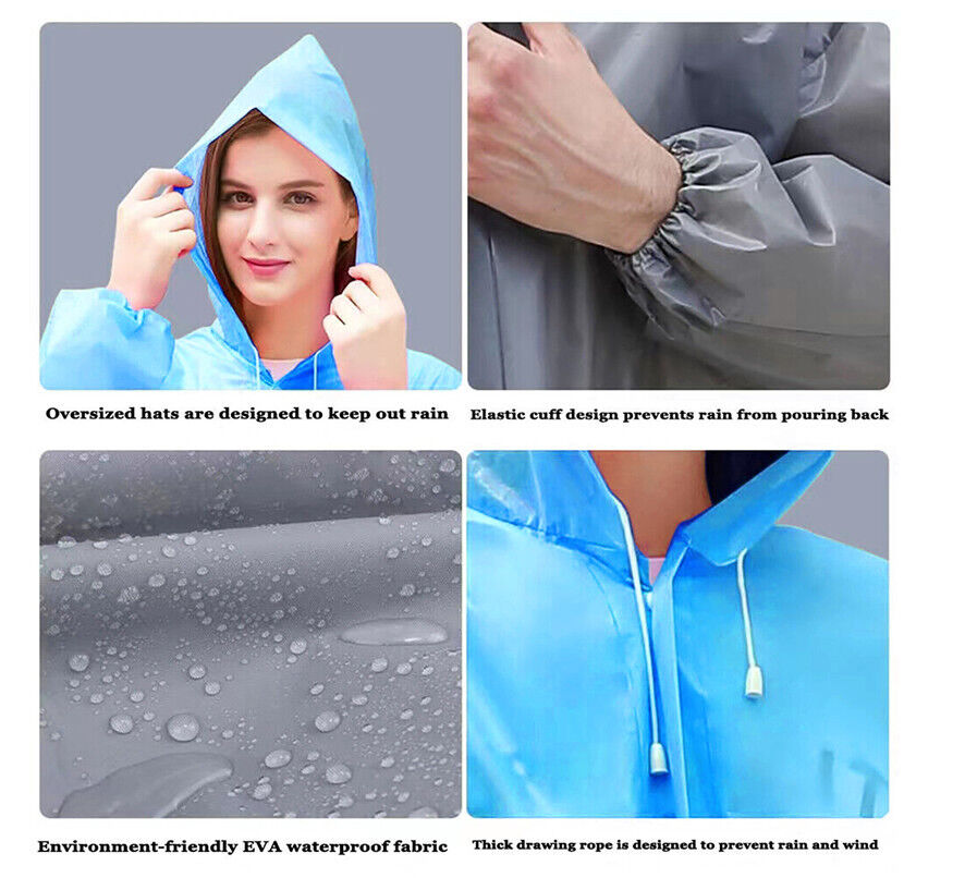 Features: This raincoat is suitable for adults,the one size design makes it great for both men and women. The rainwear is made of EVA,which is safe and durable to use,comfortable to wear.