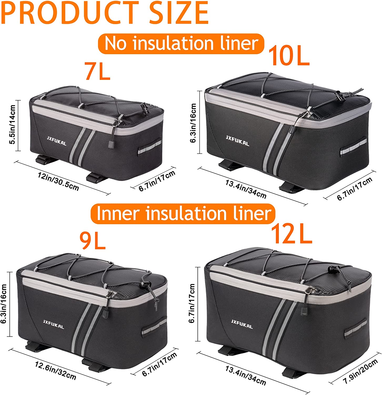 Rear Bike Rack Bag with Rain Cover, 7L/9L/10L/12L Waterproof Bicycle Ebike Saddl