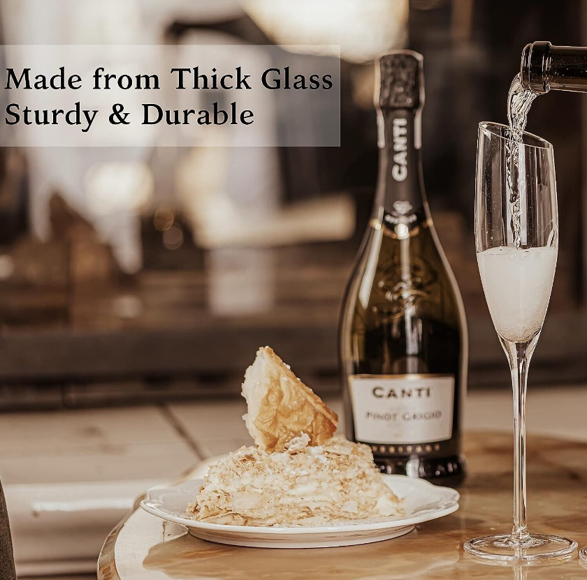 Set of 4 Champagne Flutes Modern Crystal Mimosa Glasses 6 Oz for Sparkling Wine