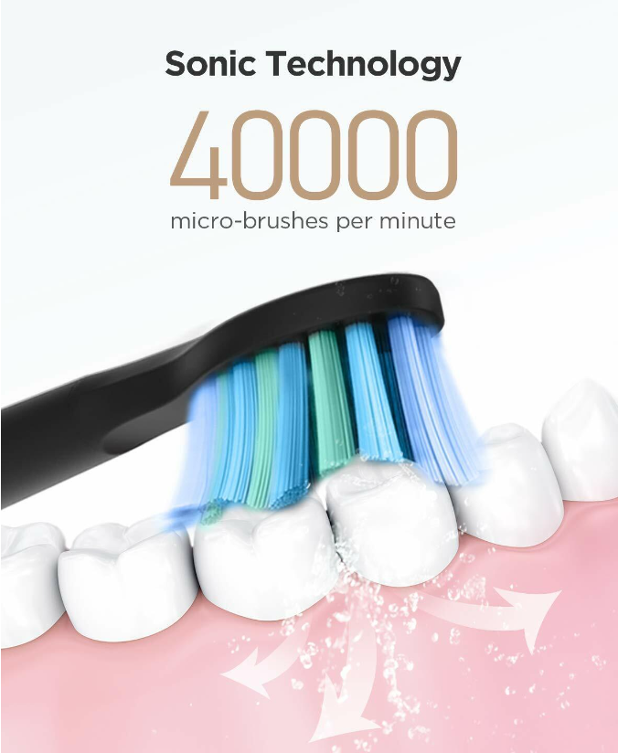 • ♥【Healthier Gums and Brighter Teeth】Our electric toothbrush has 40000 strokes/min. Powerful cleaning removes up to 99% more plaque within few days,enhance oral hygiene and achieve noticeably whiter teeth brighten your smile in just 14 days.