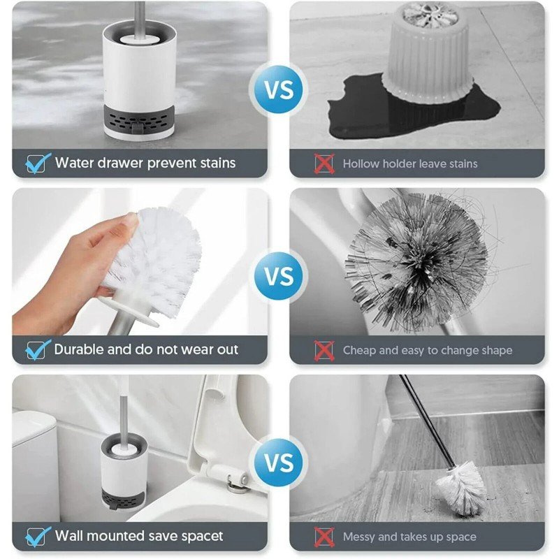 Toilet Brush and Holder Caddy Plunger Set 2 Pack-Hard Bristles Toilet Bowl Brush