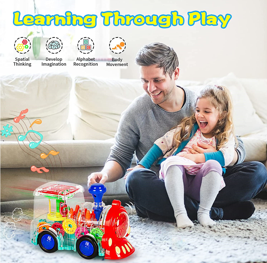 3. Train toys move with the sound effect of the engine, attracting babies to crawl and chase for fun. Baby likes to run with the train, like the light and sound it makes! Very suitable for babies to develop motor skills and learn how to control big muscles!