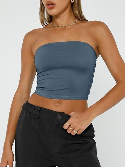 • Material:The Basic y2k tube crop tank top solid bandeau is made of 88% Polyester,12% Spandexr.Super soft, lightweight, stretchy.