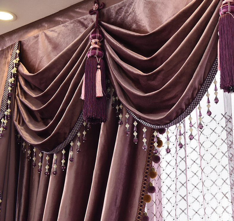 Upscale European purple Italian velvet thick cloth blackout curtain valance N936