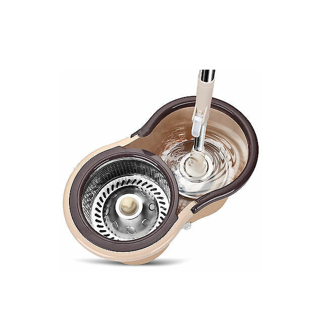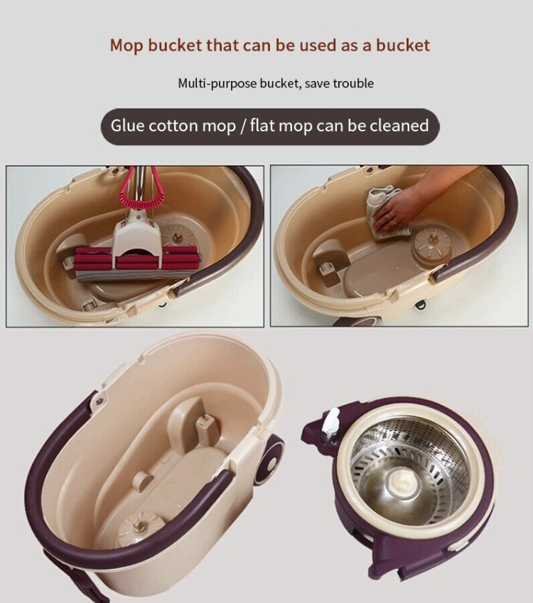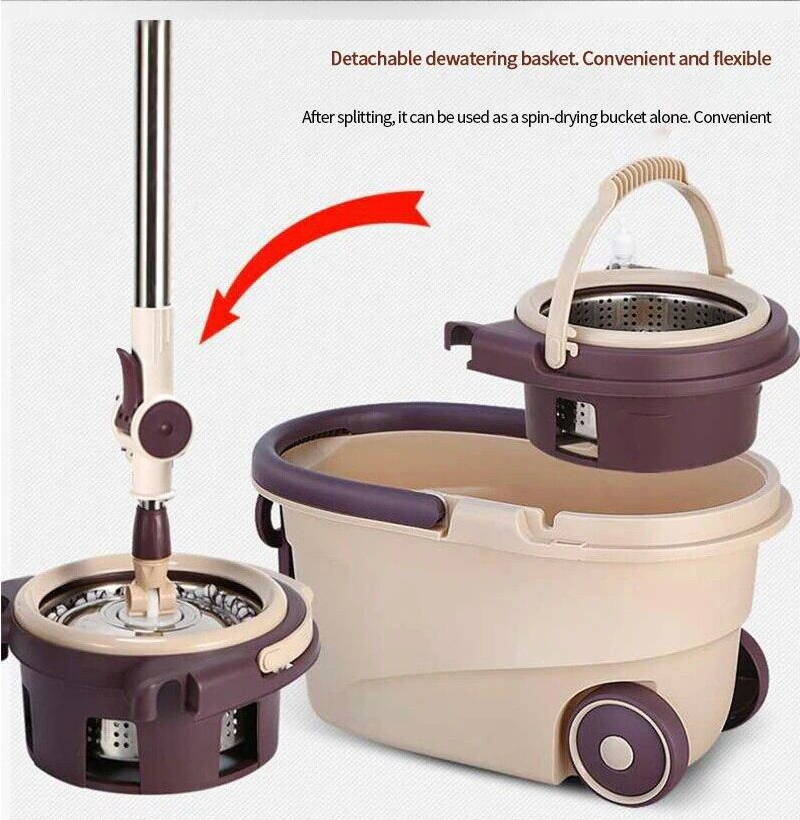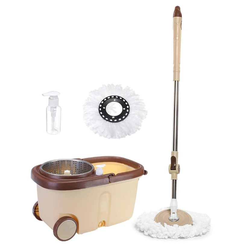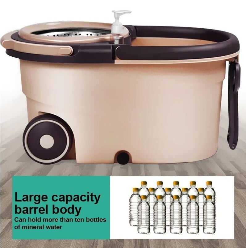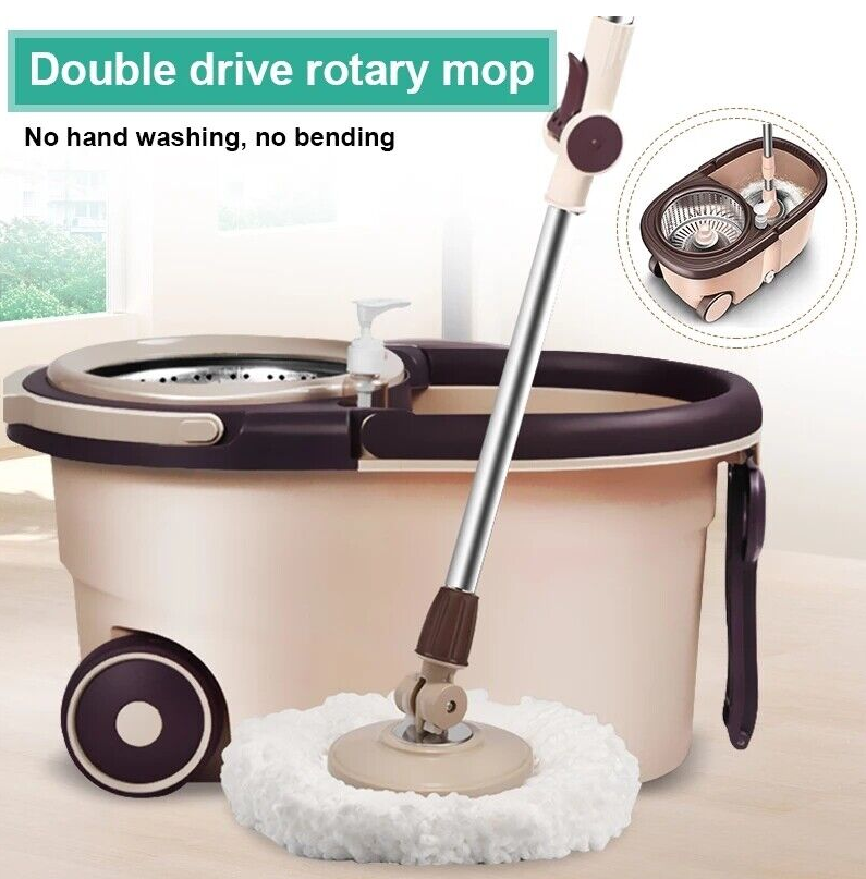 US 360° Rotating Floor Mop Bucket Set wheel with 2 Microfiber Head Cleaning Tool