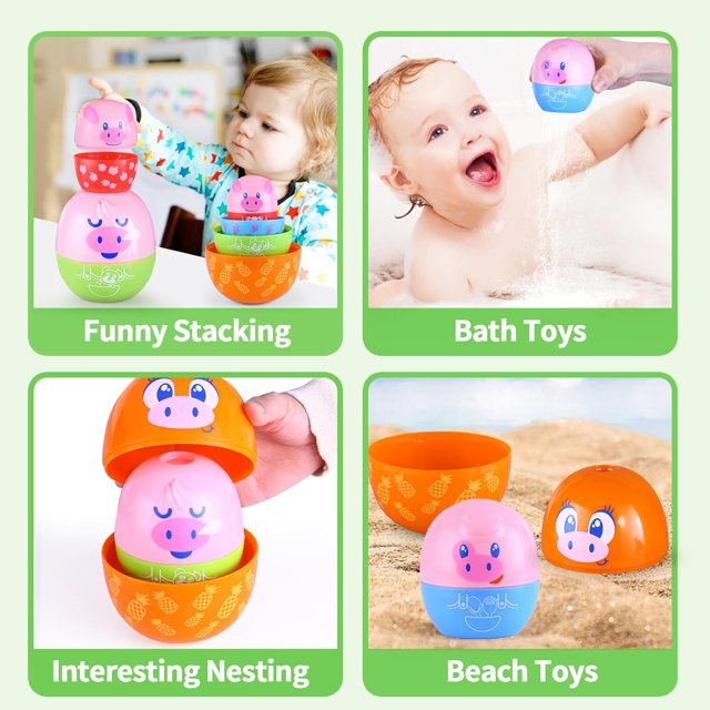 • MULTIPLE PLAY: Kids can stack this Easter nesting egg toy one piece at a time, or draw their own doodles on the piggy to decorate or create a fun story. It can also can be used as bath toys, water toys, pool toys, bathtub toys, beach toys, rattle toys, projection toys, etc., giving your child plenty of playtime. Perfect baby Easter toys for toddlers outdoor/indoor activities.