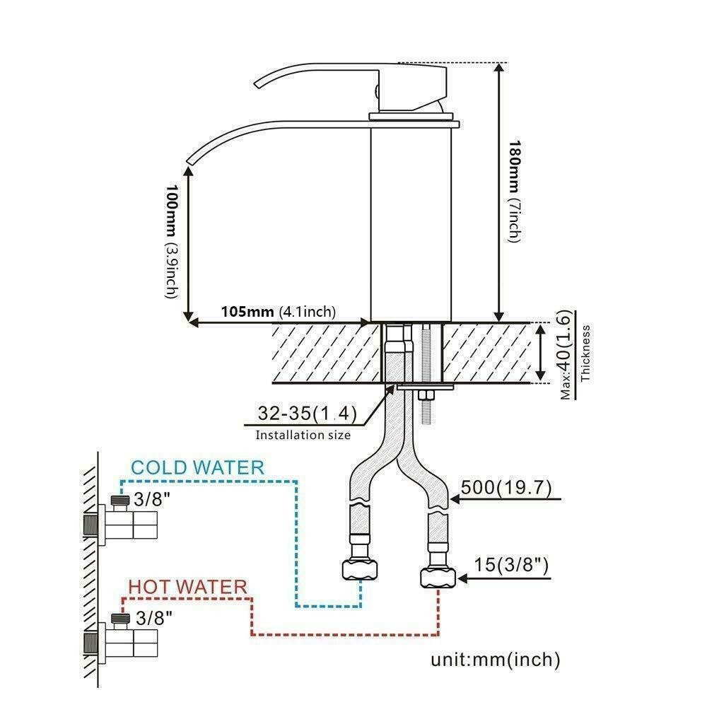 Waterfall Bathroom Sink Faucet Single Handle Hole Vanity Mixer Taps with Cover