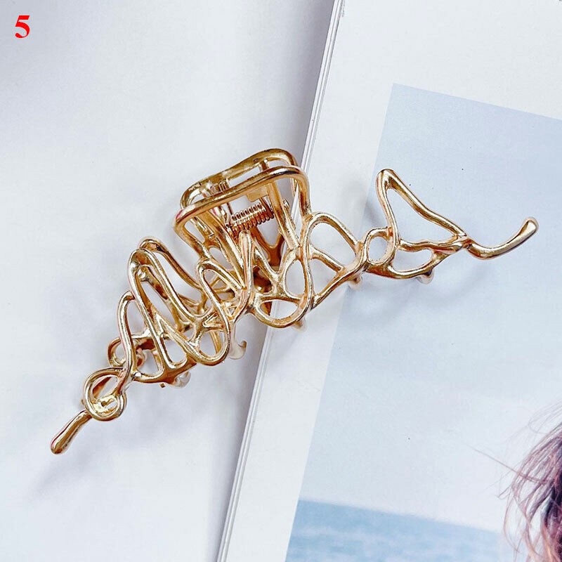 Women Hair Clips Claw Large Geometric Metal Hollow Out Hair Accessories Elegant